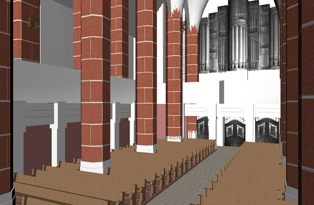Blick von der Kanzel in Richtung West zur Orgel