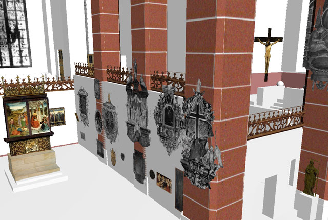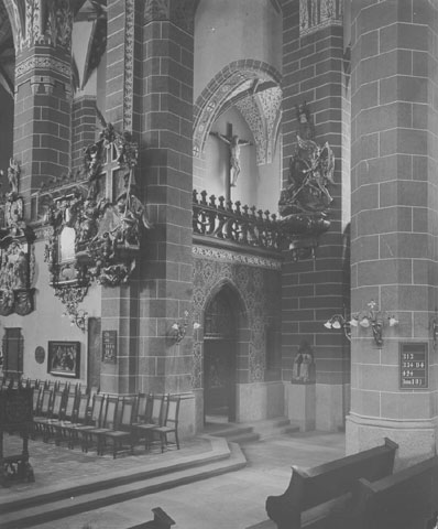 Man sieht den Altar im geschlossenen Zustand. Rechts unten ist Apostel Paulus aufstellt, an dessen Stelle in verschiedenen Aufnahmen auch der Mönch Thomas von Aquino gezeigt wird.